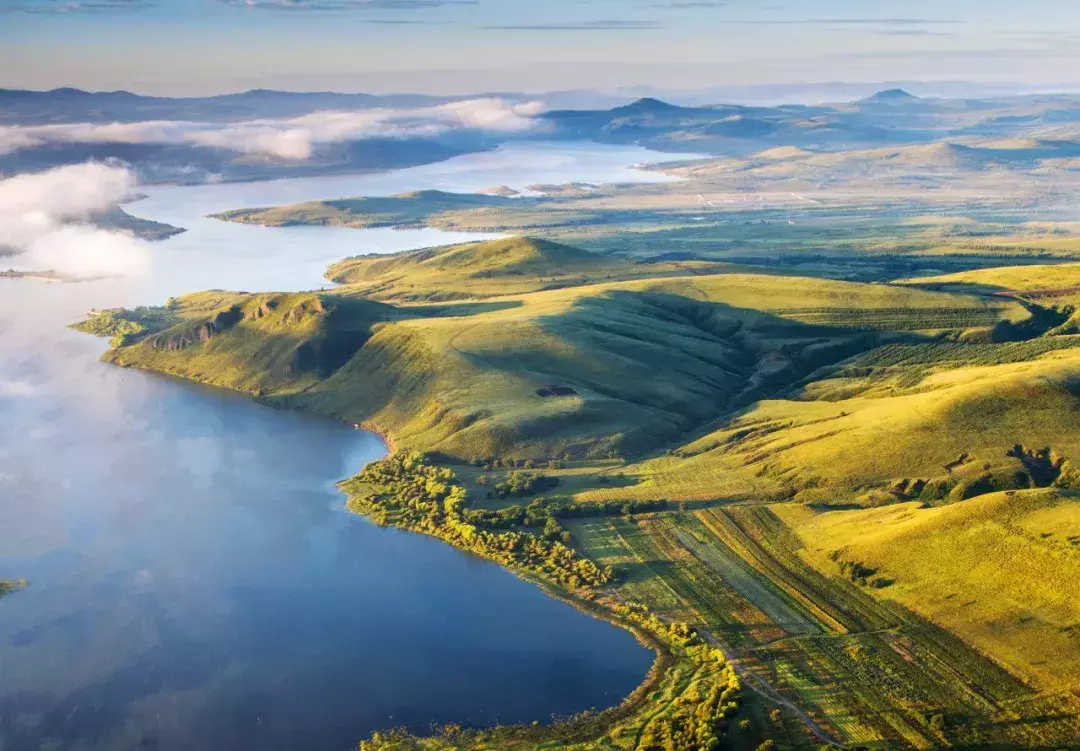 形成了国家级水利风景区、中国最美两个秋景之一的多伦湖,亚洲最大天然榆树林—榆木川