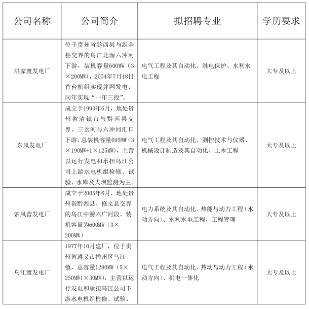 「上市国企」贵州乌江水电、黔源电力招聘啦-贵州黔源电力股份公司普定发电公司
