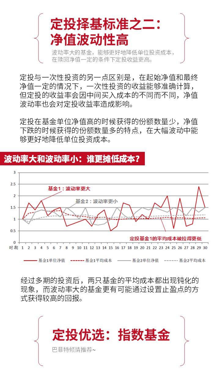 定投过程中,均摊成本的功能在波动小的基金上不能有效发挥。所以,