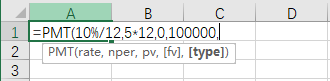 (6)最后type输入“1”表示是期初支付,因为我们通常是从定投开始那天计算。最后完整式子就是