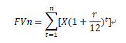 注:FVn:未来我们希望攒多少钱;t:打算攒多少个月份;r:期望获得的年化收益率;X:每月的定投金额。