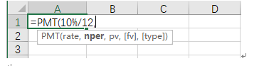 (2)在“=PMT(”后输入【年化收益率/12】,假设期望年化收益率为10%,那么就输入“10%/12”,然后用“,”隔开。