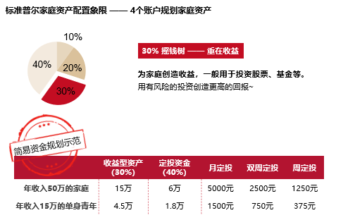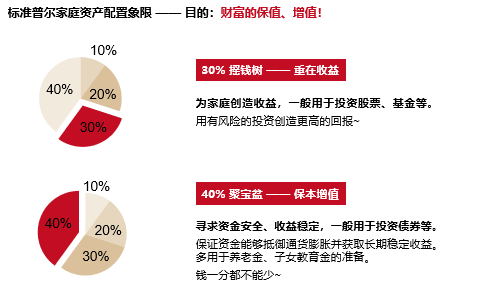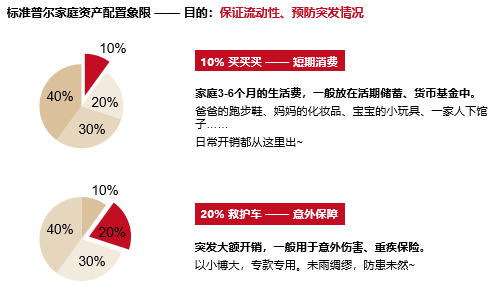 其次,为了对资金配置进行有效规划,我们可以参考——标准普尔家庭资产配置象限图。象限图通过将资金资产按照不同的用途分类,将每类资金资产进行相应地配置,可以帮助我们更加合理地分配资金。