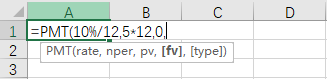 注:rate:年化收益率/12;nper:支付总月份数量;pv:现值;fv:未来我们希望攒多少钱;type:是否期初支付。