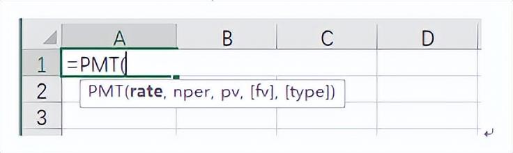 (1)打开EXCEL表格,任意区域用英文输入“=PMT(”。