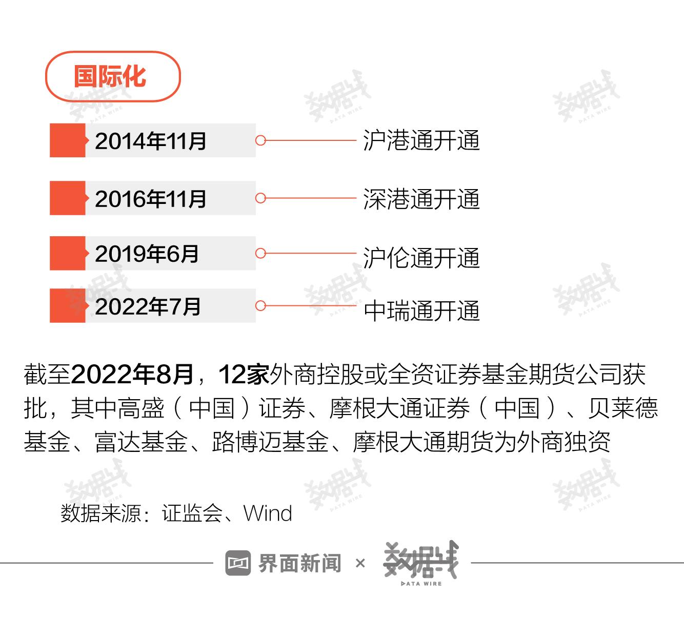 十年来,中国资本市场的国际化程度逐渐提高,沪深港通、沪伦通、中瑞通等互联互通机制先后开启,证监会全面放开证券基金期货经营机构外资股比限制后,目前已有12家外商控股或全资证券基金期货公司获批,资本市场的双向开放在广度和深度上日益加大。
