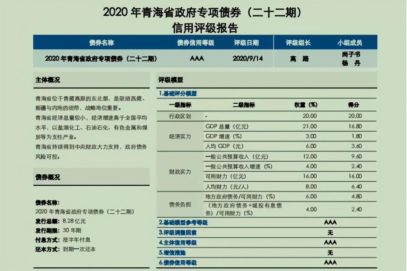 东方金城国际信用评估有限公司对2020年青海省政府专项债券(二十二期)