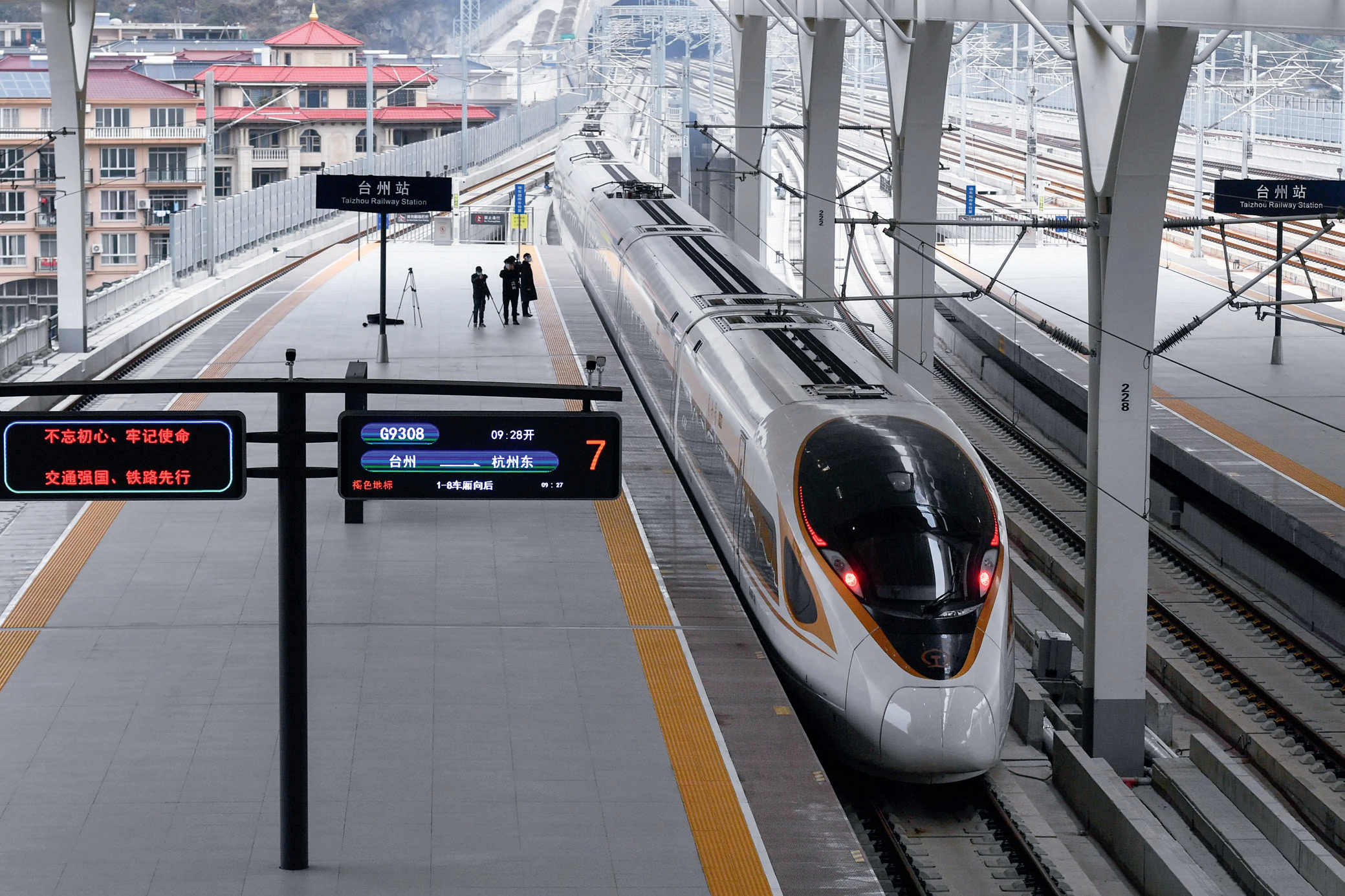 ● 2022 年 1 月 8 日,随着两趟首发复兴号列车同时从台州站、嵊州新昌站开出,分别驶向杭州、温岭方向,更名为杭台高铁的原杭绍台铁路正式开通运营。
