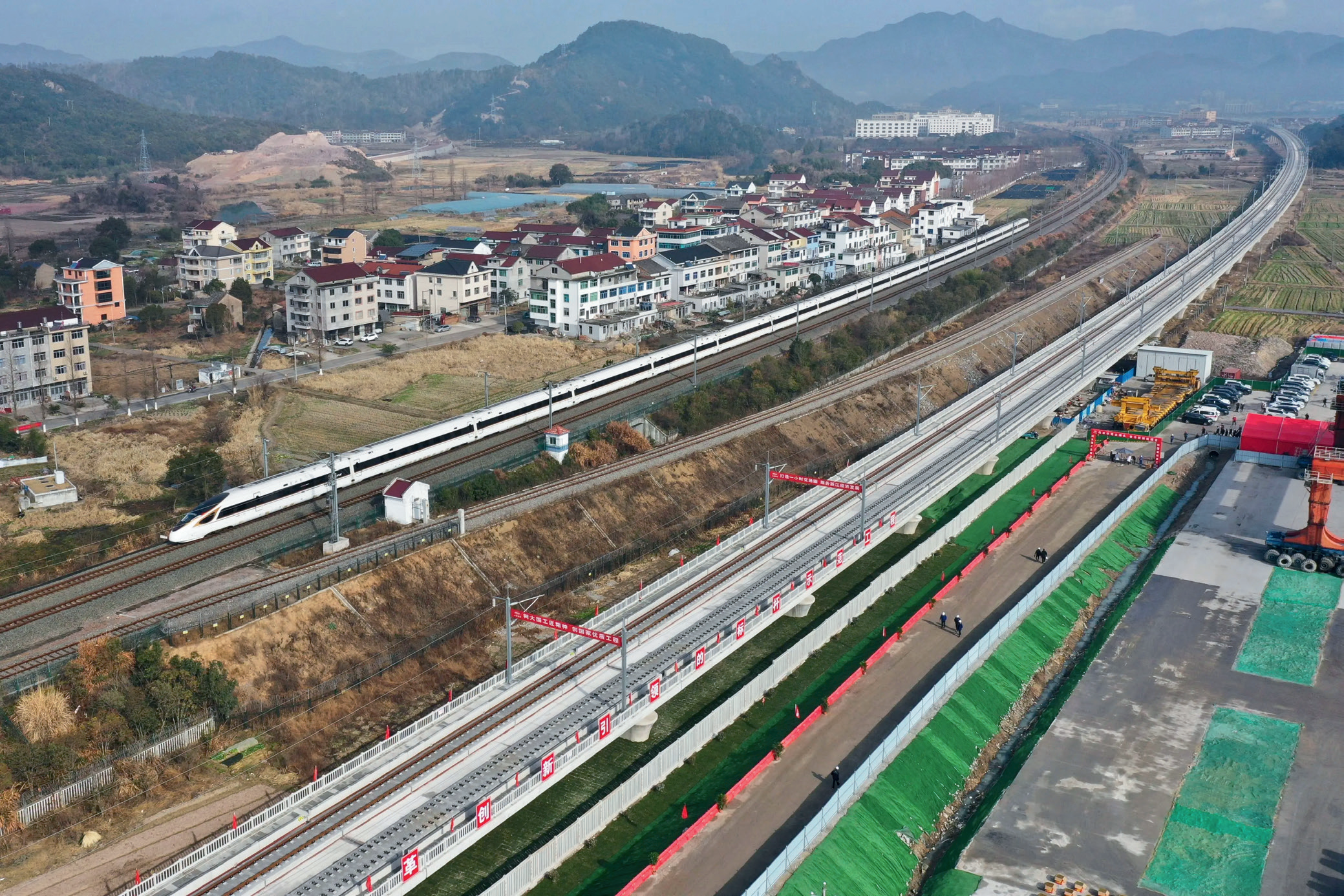 2021 年 8 月 16 日,杭绍台铁路开始静态验收(图片来源 / 央视网视频截图)