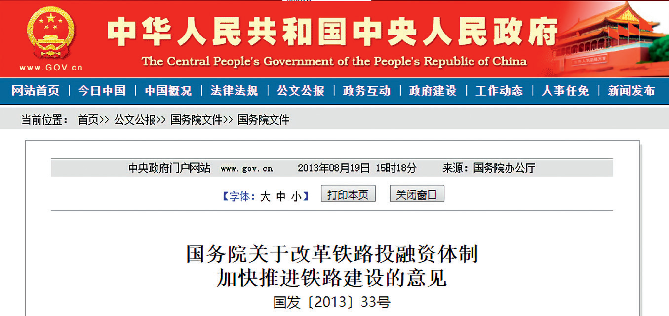 国务院正式发布《关于改革铁路投融资体制加快推进铁路建设的意见》