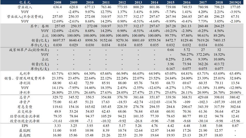 的加热不燃烧产品IQOS至18年对菲莫国际的收入贡献已超过10%,19Q1在日本市占率创造16.9%新高;母公司奥驰亚于18年12月128亿美元收购明星蒸汽电子烟品牌JUUL 35%股权补强新型烟草业务版图,预计JUUL19年销售额有望增长至34亿美元(+160%)。(2)