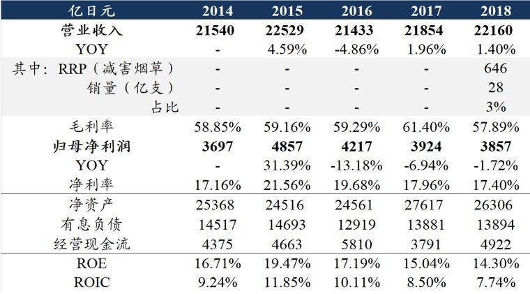 日本烟草重点数据一览
