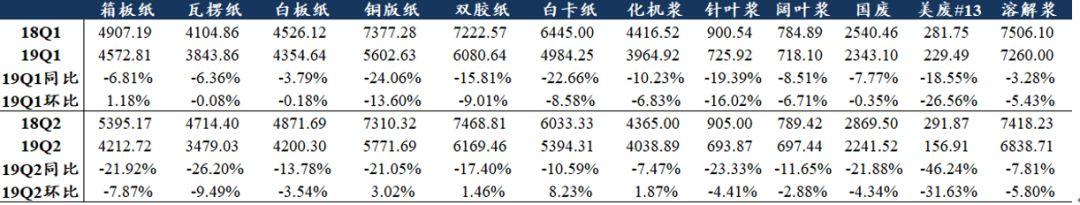 19Q1-19Q2细分品种价格梳理(单位: