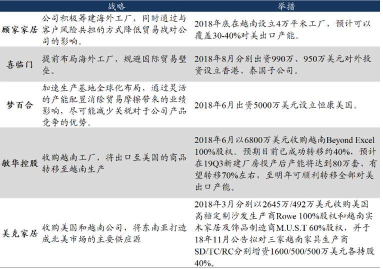 为了能够积极应对可能产生的贸易摩擦,软体及成品的上市公司均已加快海外生产基地布局,中长期利好行业份额向优质上市公司集中。其中,