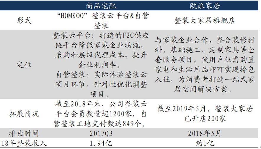 尚品宅配&欧派家具整装业务布局