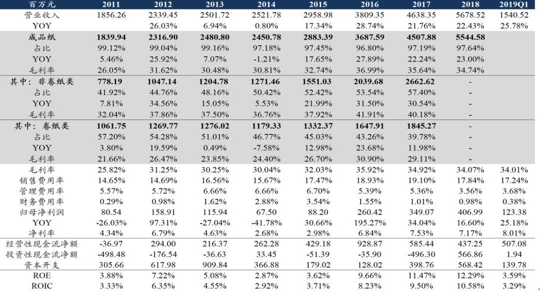 短期来看,文化纸价格上扬、纸浆价格持续走弱,利好公司Q2单吨盈利向上;同时公司老挝40万吨再生浆板项目已于5月下旬试生产,预计7月满产供应邹城箱板纸项目,产业链配套持续完善;20万吨本色高得率生物质纤维项目将于19年四季度初投产,自给率有望进一步提升(18年为40-50%),巩固成本优势;看好公司全年业绩逐季向上!长期来看,太阳纸业是造纸板块中前瞻布局的核心资产,具有自下而上领跑于行业的优秀潜质,其护城河除了依赖于专注主业和精细运营的优秀管理层外,产业布局在纸种多元化、上游原料自给、海外赛道抢跑等三个维度也领先同行。本周公司公告拟投资5亿建设广西林浆纸一体化项目,巩固长期成长。我们认为,本轮产业链利润持续上移的过程中,太阳纸业最为利好,当前估值处于底部,重点推荐!