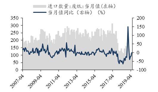 36:废纸月度进口量及同比(万吨,%)