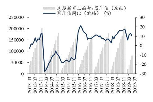 图47:房屋新开工面积累计值及同比(万平,%)