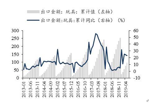 图53:玩具出口金额和累计同比(亿美元,%)