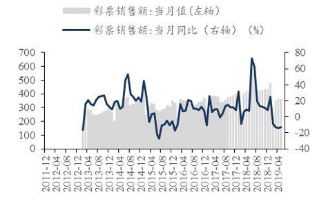 2019年5月办公用品零售额231亿,同比上升3.10%。2019年5月玩具出口金额20.68亿美元,出口金额同比上升16.18%;累计出口金额为95.47亿美元,累计同比上升23.10%。2019年5月,体育彩票销售额190.03亿元,同比下降9.95%;福利彩票销售额164.93亿元,同比下降15.66%;彩票销售总额355.23亿元,同比下降12.70%。