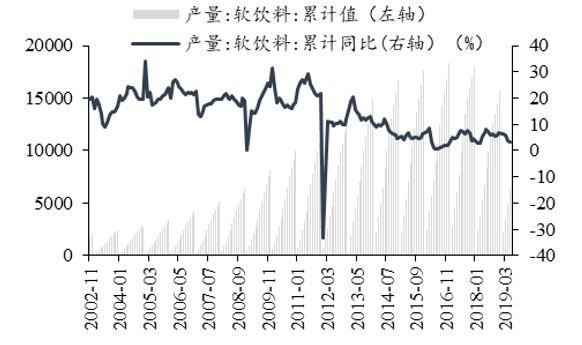 5月软饮料产量累计同比上升3.40%
