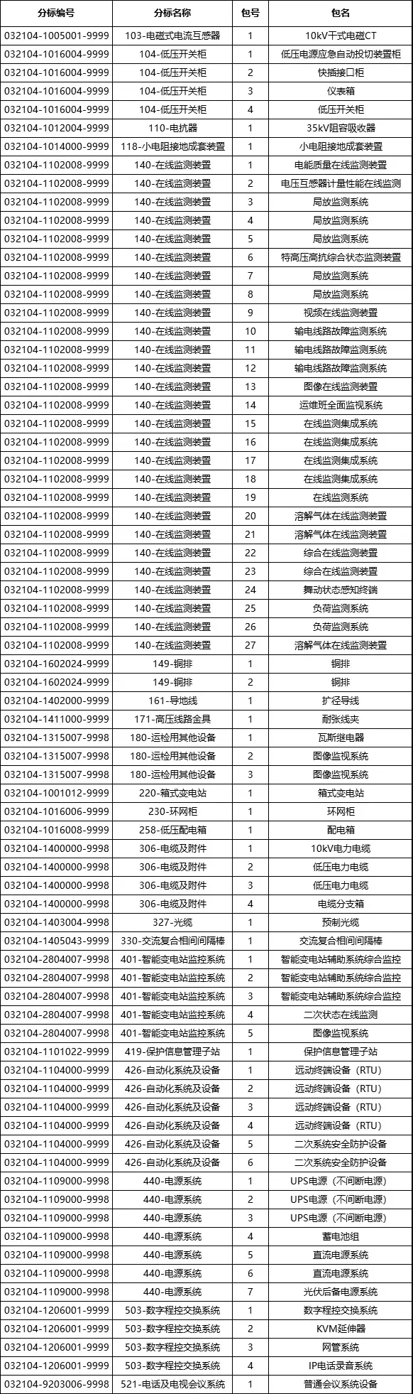 分标编号及货物名称见下表,货物详细信息见本公告附件货物清单。