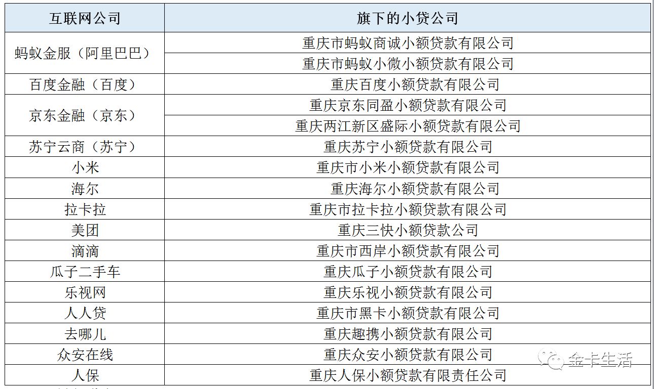 在“现金贷”风波之前,重庆对于小贷公司的监管还是较为“温柔”的,许多大型互联网公司都在重庆开启了自个的小贷公司,大部分也都做起了网络小贷业务(表1)。