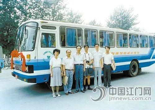 △郭景坤院士(左二),在安装有无水冷陶瓷发动机的大客车前拍照留念。