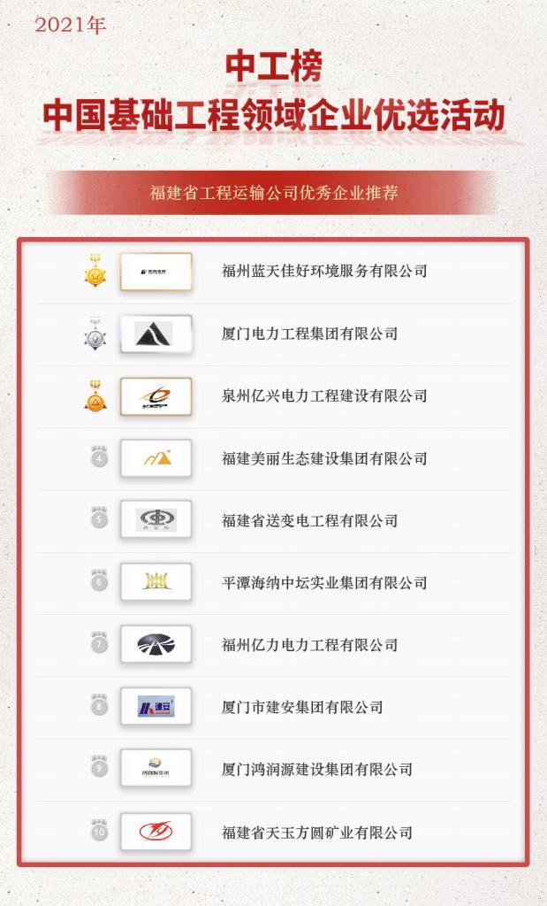 「中工榜」公示:福建省工程运输公司优秀企业推荐-福州亿力实业有限公司