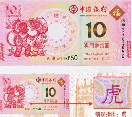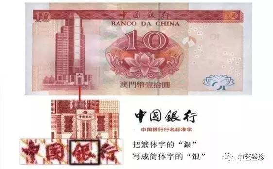 中国银行发行的10元券钞中,中银大厦图案上的“中国银行”行名标准字体出现了严重的错误,把繁体字的“银”写成简体字的“银”。中国银行是世界知名银行,有统一的企业形象。“中国银行”四字是由郭沫若先生题写的,属标准标识,不得更改。而10元券整版钞中的“中国银行”四个字却出现如此纰漏,每处错误在放大镜下均清晰可见。