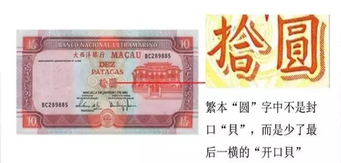 大西洋银行发行的10元券钞,繁体字的“圆”字少了一横;钞票上的“圆”字不是封口“贝”,而是少了最后一横的开口“贝”。作为钞票上的文字,其严肃性不言而喻。出现如此明显的错字在世界印钞史上均属罕见。