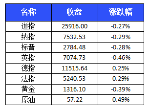 美股全线收低道指三连跌 欧洲主要股指涨跌互现