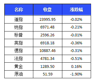 美股上周五小幅下跌,结束此前连续五日上涨走势。标普500指数下跌0.37点,跌幅0.01%,报2596.26点。道指下跌5.97点,跌幅0.02%,报23995.95点。纳斯达克综合指数下跌14.59点,跌幅0.21%,报6971.48点。上周,标普500指数累涨2.54%,道琼斯工业平均指数累涨2.4%,纳斯达克综合指数累涨3.45%。