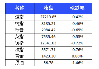 点,跌幅0.42%,报27219.99点;纳指下跌37.59点,跌幅0.46%,报8