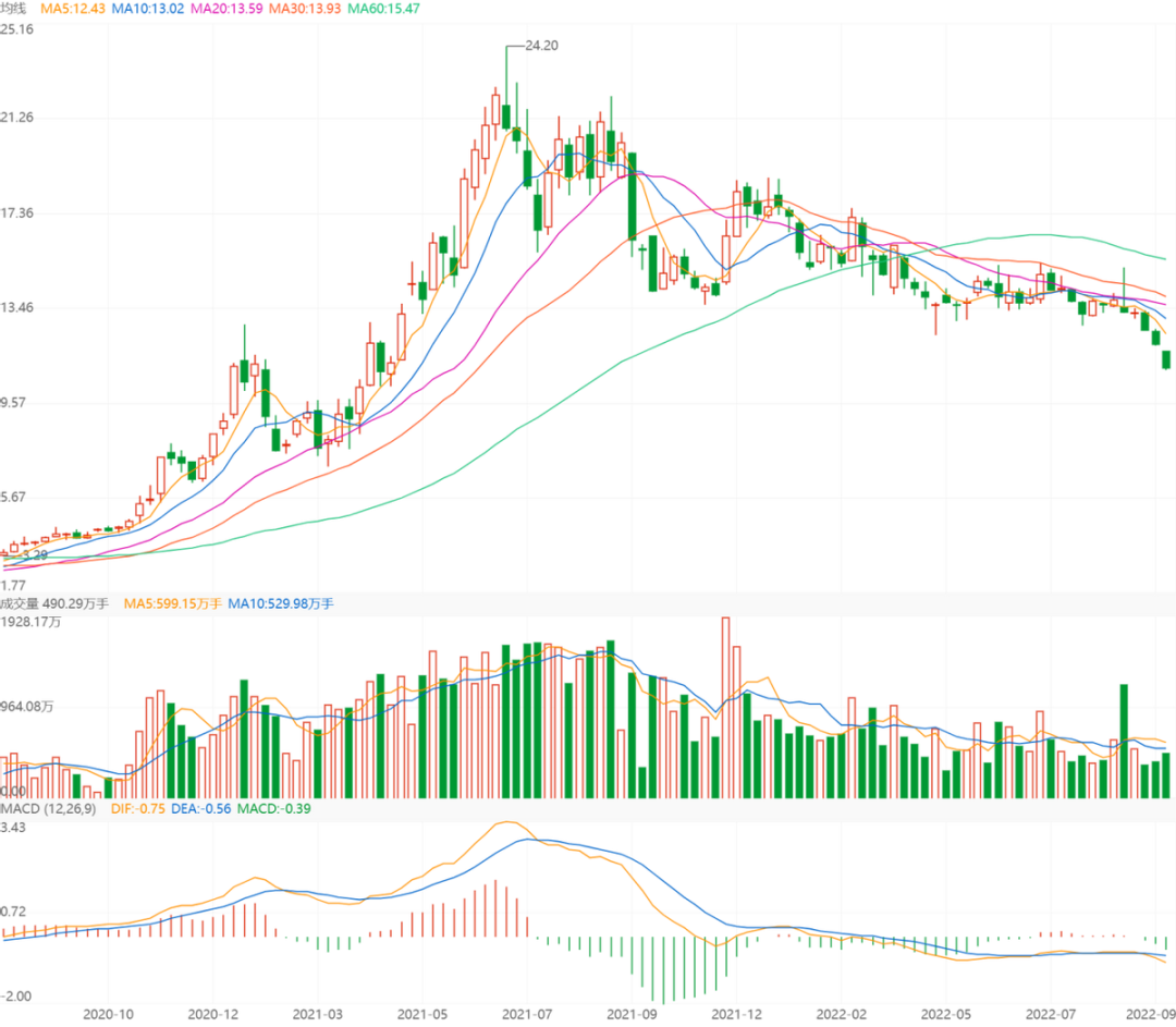 看一下同期公司的股价走势,CCFI在2022年1月站上高点,股价在2021年7月站上高点,之后都是一路下跌,股价预期拉满。