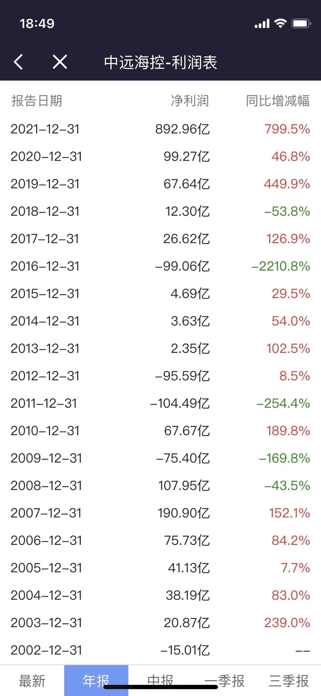 即便如此,中远海控也没能很及时的反应过来,从下面这张历年利润表就能看出来。