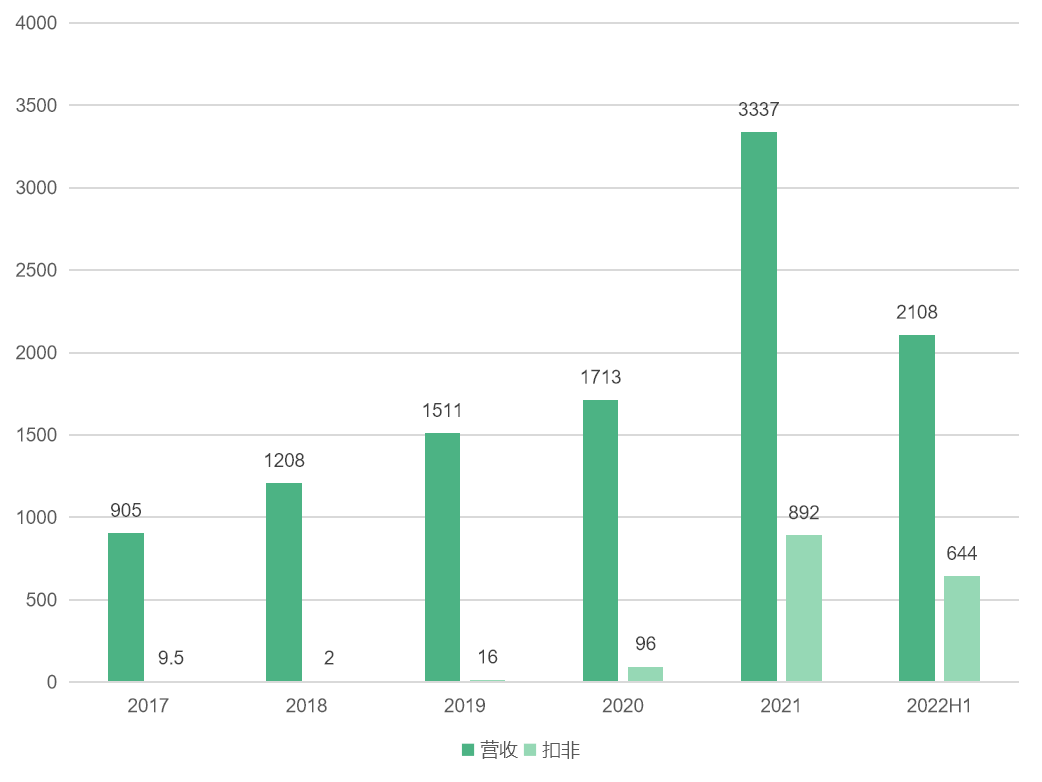 本来采用半年报数据的,但是我在计算过程中发现一些问题,严谨起见,本内容仅采用一季报及往前的财务数据,截至2022H1,公司营业收入2108亿,同比增长51%,扣非净利润644亿,同比增长76%。