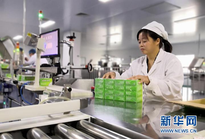 9月14日,济人医药集团外包装车间,一位工作人员分装疏风解毒胶囊。新华网 李东标 摄