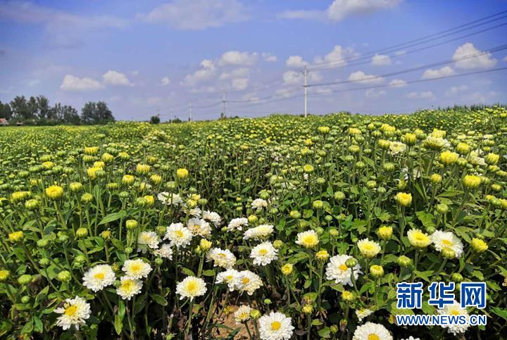 9月14日,药王村中药材种植基地内菊花盛开。新华网 李东标 摄