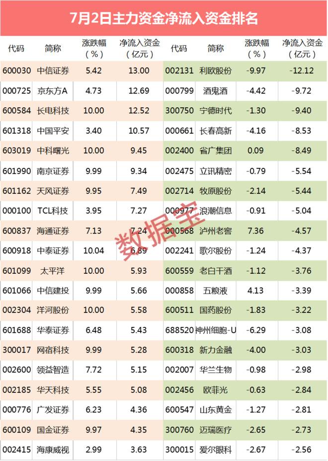 两股流入超12亿元,其中长电科技涨停,中科曙光流入超9亿元,TCL科技流入超7亿元,网宿科技、领益智造、华天科技等流入超5亿元。