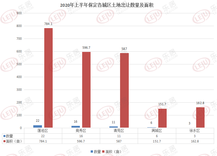 具体来看,五区中,莲池区土地出让22宗,面积逾784亩,出让数量及面积均居首位,占土地出让总量的34%。竞秀区次之,土地出让近597亩。新三区中,清苑区土地出让量遥遥领先,11宗587亩土地成功出让,占土地出让总量的26%。