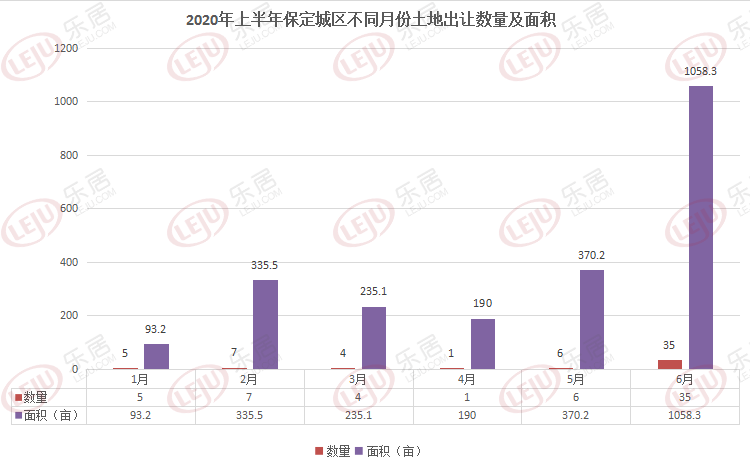 从月度上来看,2020年1-5月,保定城区仅有23宗地块成交。随着5月份楼市解遗加速,土地供应集中放量,城区6月份土地出让加速升温。6月保定城区40宗地块参与土拍,35宗地块出让,面积约1058.3亩,占城区土地出让总量的47%。