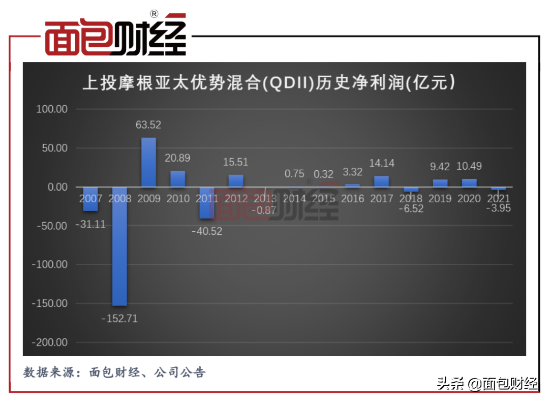 截至2021年末,上投摩根亚太优势混合(QDII)以97.31亿元的累计亏损成为四只首批出海的基金系QDII中的“垫底”产品。