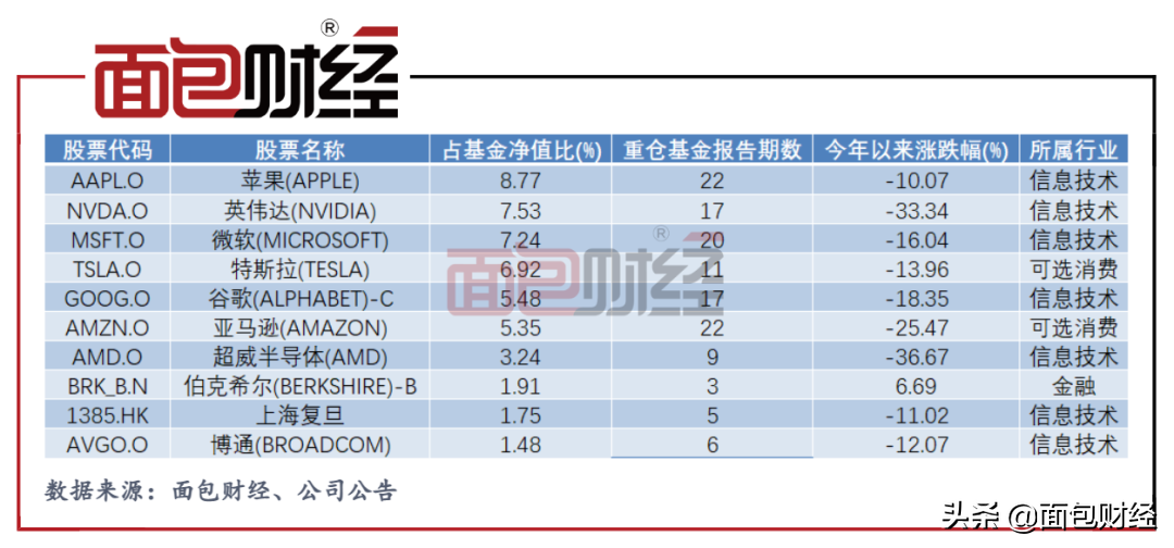 图3:华夏全球股票(QDII)2022年一季度末前十大重仓股年初以来涨跌幅