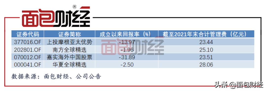 图5:国内首批QDII基金成立以来回报率及累计管理费