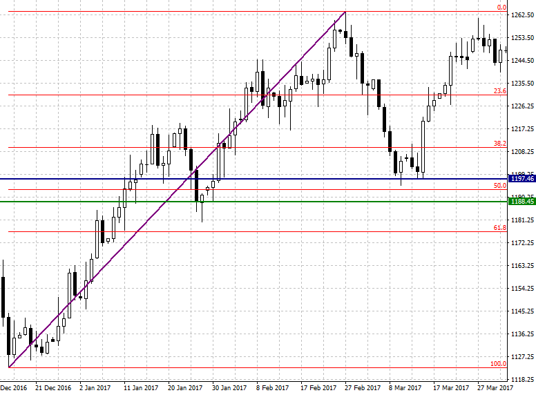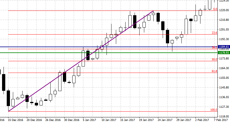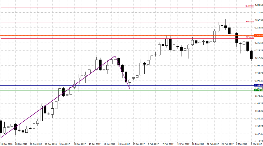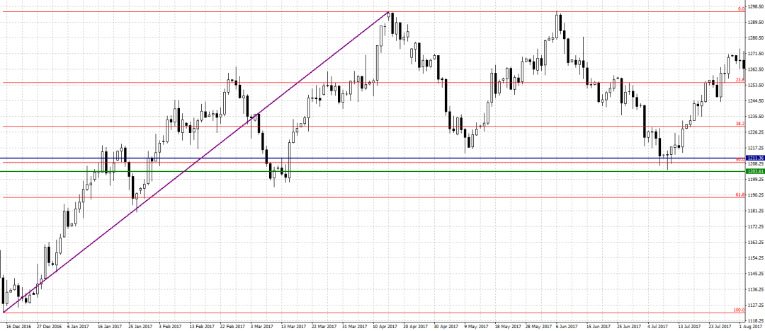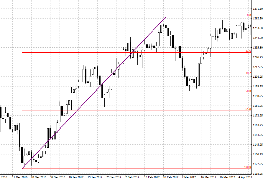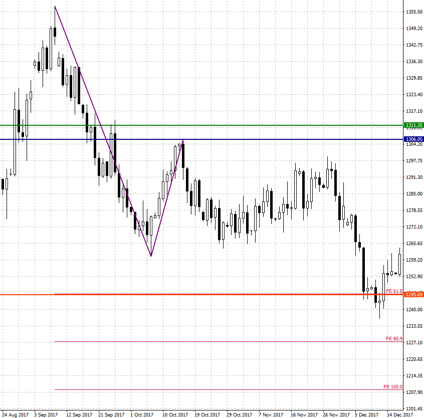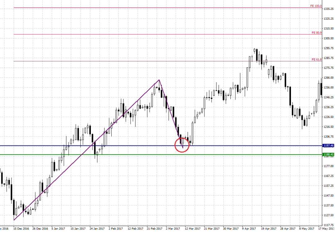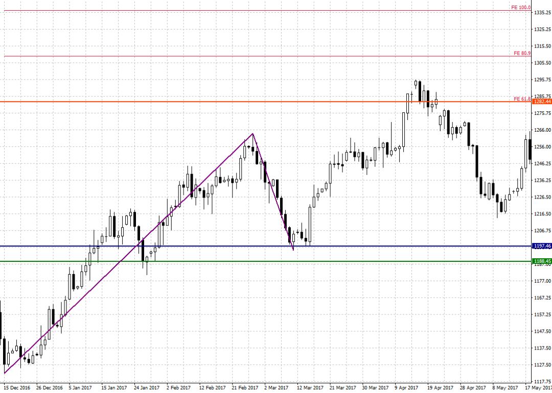 B. 2016年12月至2017年4月,黄金日线图 (50%及FE 61.8%或FE 80.9%)