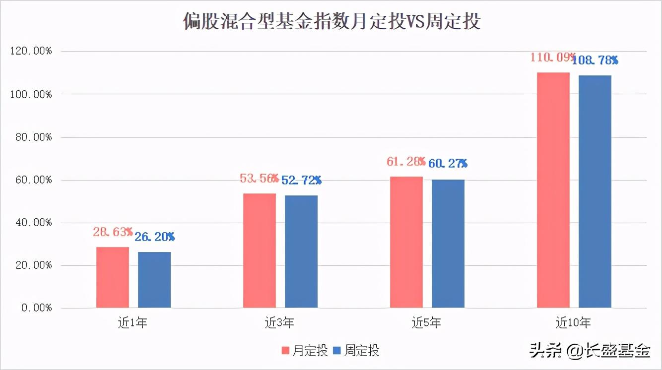 假设以偏股混合型基金指数为定投标的,分别进行月定投(每月最后一个交易日)和周定投(每周五),那么两者之间的差异会有多大呢?