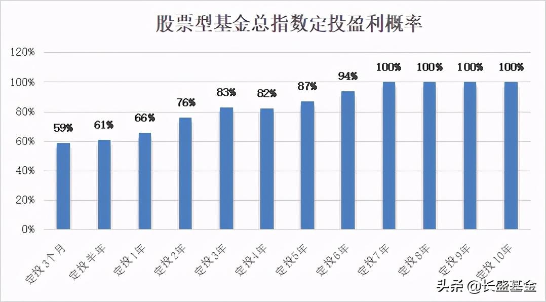 定投贵在坚持,那这是不是意味着定投的时间越长越好呢?首先,定投的时间越长,赚钱的概率确实越高。以股票型基金总指数为标的,任意时点开始定投,回测数据显示:随着定投时间的拉长,盈利概率也会明显上升。也就是说,坚持长期定投,确实可以帮助我们降低亏损的可能性。