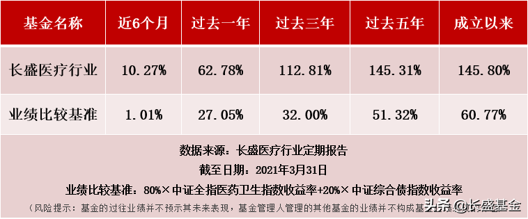数据来源:长盛医疗行业定期报告,统计区间2016.2.3-2021.3.31。基金的过往业绩并不预示其未来表现,基金管理人管理的其他基金的业绩并不构成基金业绩表现的保证。