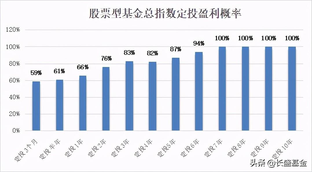 以股票型基金总指数为标的,任意时点开始定投,回测数据显示:随着定投时间的拉长,盈利概率也会明显上升。